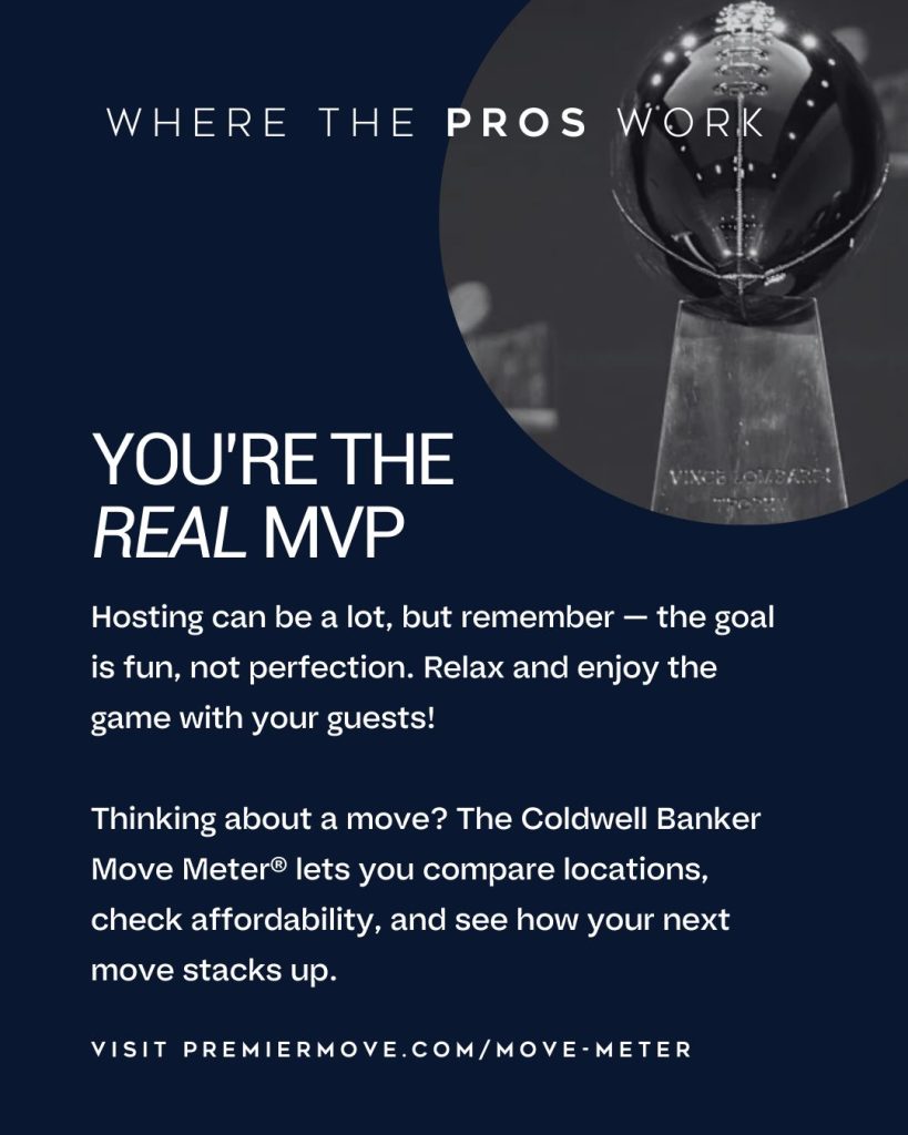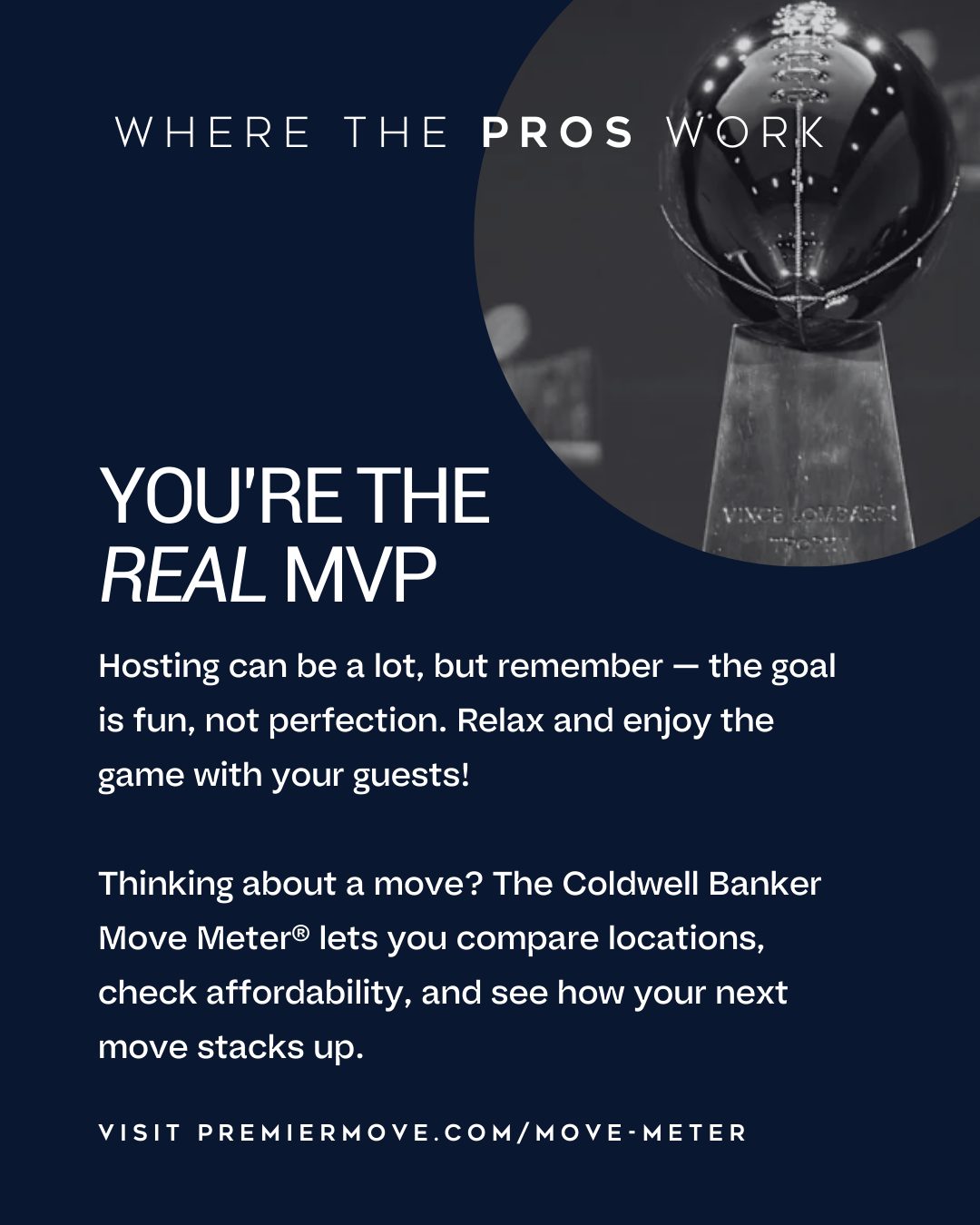 Whether you’re enjoying memories in your current home or thinking about finding a new space perfect for entertaining, Coldwell Banker Premier is here to help every step of the way. Call us at 800.835.0811 or visit PremierMove.com to get started! Because in football and real estate, the right team makes all the difference.